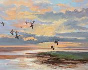 She now lives and works from her studio at Coastguard House, on the edge of the marsh at Thornham, where uninterrupted views of the sea, marsh and the ever changing sky continue to give her inspiration.